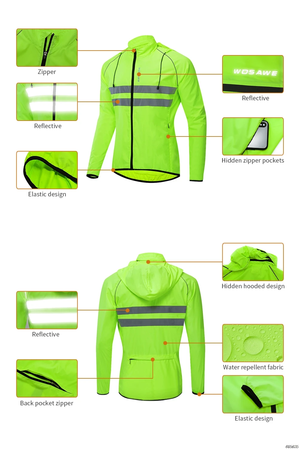 Giubbotto catarifrangente antivento per bici, Giacca Wosawe ciclismo antivento